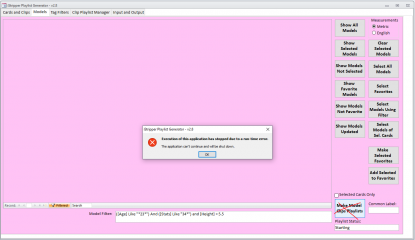 For anyone interested, there is no compatibility issue with Access 10. The Playlist Generator is designed to work against the "live" data folder. @ArchFeral was pointing it to an incomplete backup version. iStripper has two working folders, a models folder that contains the clips themselves, and a data folder with control information. iStripper uses the models.lst file and the names.xml file in the data folder and the card xml and image files in each cards data folder. It also looks for a playlists folder in the data folder, but will work if none is present.