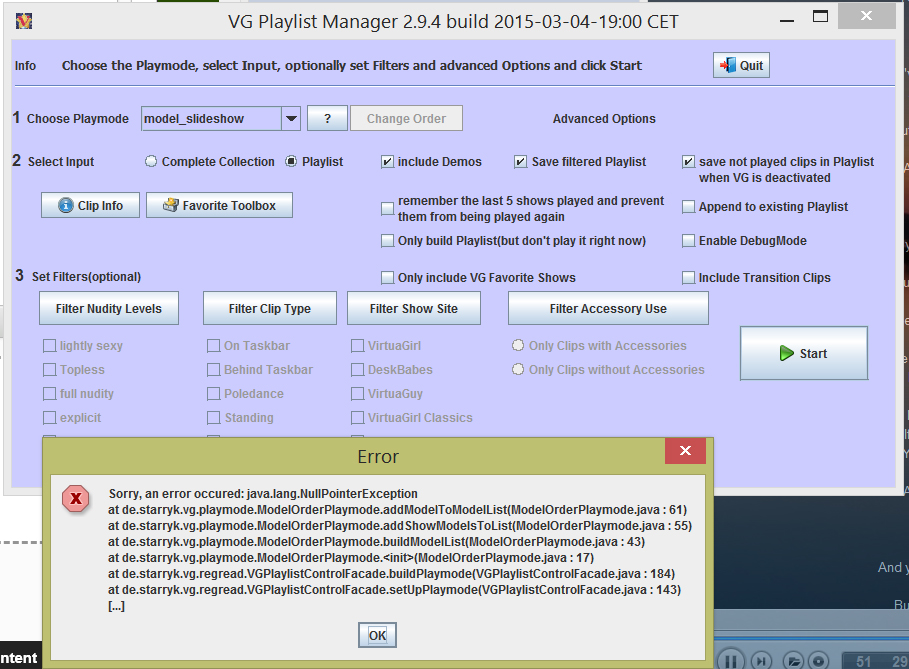 - When the option 'Only build Playlist (but don't play it right now)' was used in V 2.9.1 it would result in an exception after saving the playlist. This has been fixed