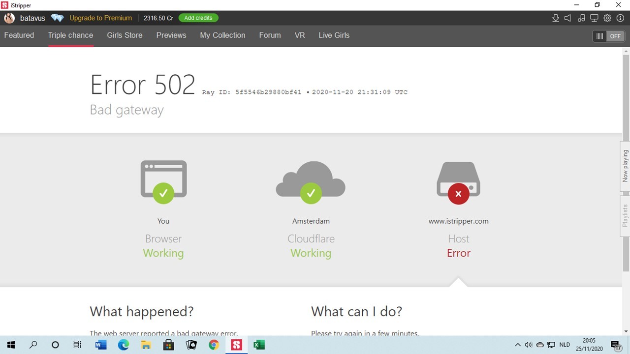 But what I find curious - when did you take that screen print? What I have noticed is the date on the 502 message is 20.11.2020 which was Friday.