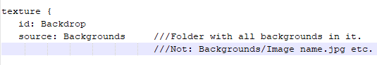 If you want multiple backgrounds to load random at scene start, you have to put all the backgrounds in 1 folder and in the texture used section use the background folder name as the source (no image name after). Each time the scene starts a random image in that folder is picked.