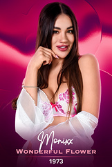 Monixx has an exotic look about her, Siberian according to her biography. Whatever it may be, she is exquisitely beautiful. Simply gorgeous long, sexy legs and nice big boobs to admire from afar (unfortunately.)