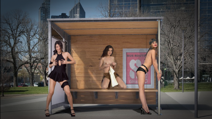 Neon "sexy girls" flashing background, 3 girls standing and pole clipsThat's a really Nice one